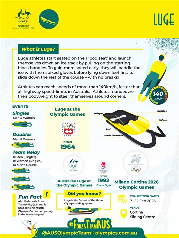 Four Australians have competed at the Olympic Games in Luge. Diane Ogle was the first Australian to represent her country in this sport. She competed at Albertville 1992 and flew down the track to place 21st from 24 contenders. At the following Olympics, Roger White became the first male to represent Australia, placing 32nd at Lillehammer 1994.